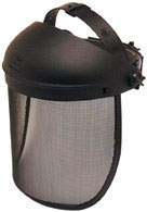 Защитен екран от метална мрежа 190х270 mm с алуминиева рамка за дървообработка, каменни кариери и градинарство.  Предлага се в два варианта - като лицев екран с околожка и като комплект каска с адаптер за мрежата и антифони за каска.
