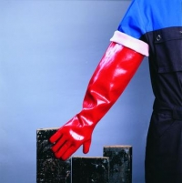 Многофункционални PVC ръкавици за работа в агресивна омаслена или киселинна среда, при хидрокарбони и други химични продукти във влажна среда. Ръкавиците са категория ІІІ, сертифицирани по новия стандарт EN 374-2003. Дължина 70 см.