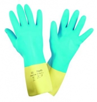 Mix Color - неопренови ръкавици, смесени с латекс. Флокиран памук отвътре. За различни опирации в химична среда. При работа с торове, обработка и обезмасляване на метали, триене, мелене, изстъргване на нечистотии, в рибната промишленост или в зеленчукопроизводството. Ръкавици за основна химична работа. Дължина 32 cm, дебелина 0,72 mm.