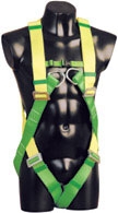 Предпазна сбруя с 2 опорни точки: на гърба и гърдите. Гръдно и бедрено напасване. Допълнително гръдно осигуряване. Ярки цветове за добра видимост.