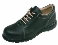 Дамски обувки от лицева кожа, с кожени хастар и стелка. Черни с бежови връзки. Защита в бомбето (S2) с LIGHTIUM