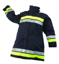 Пожарникарски костюм за защита от радиационна и конвекционална топлина и краткотраен контакт с пламък, от проникване на течни химикали, на места с възможен електростатичен заряд.