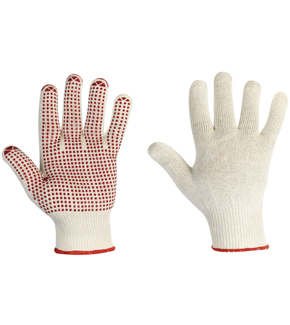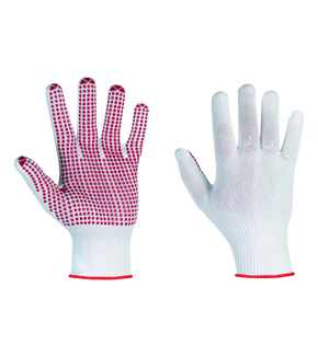 100% плетен полиамид ниска плътност. PVC капки на дланта. Размер 7-10.